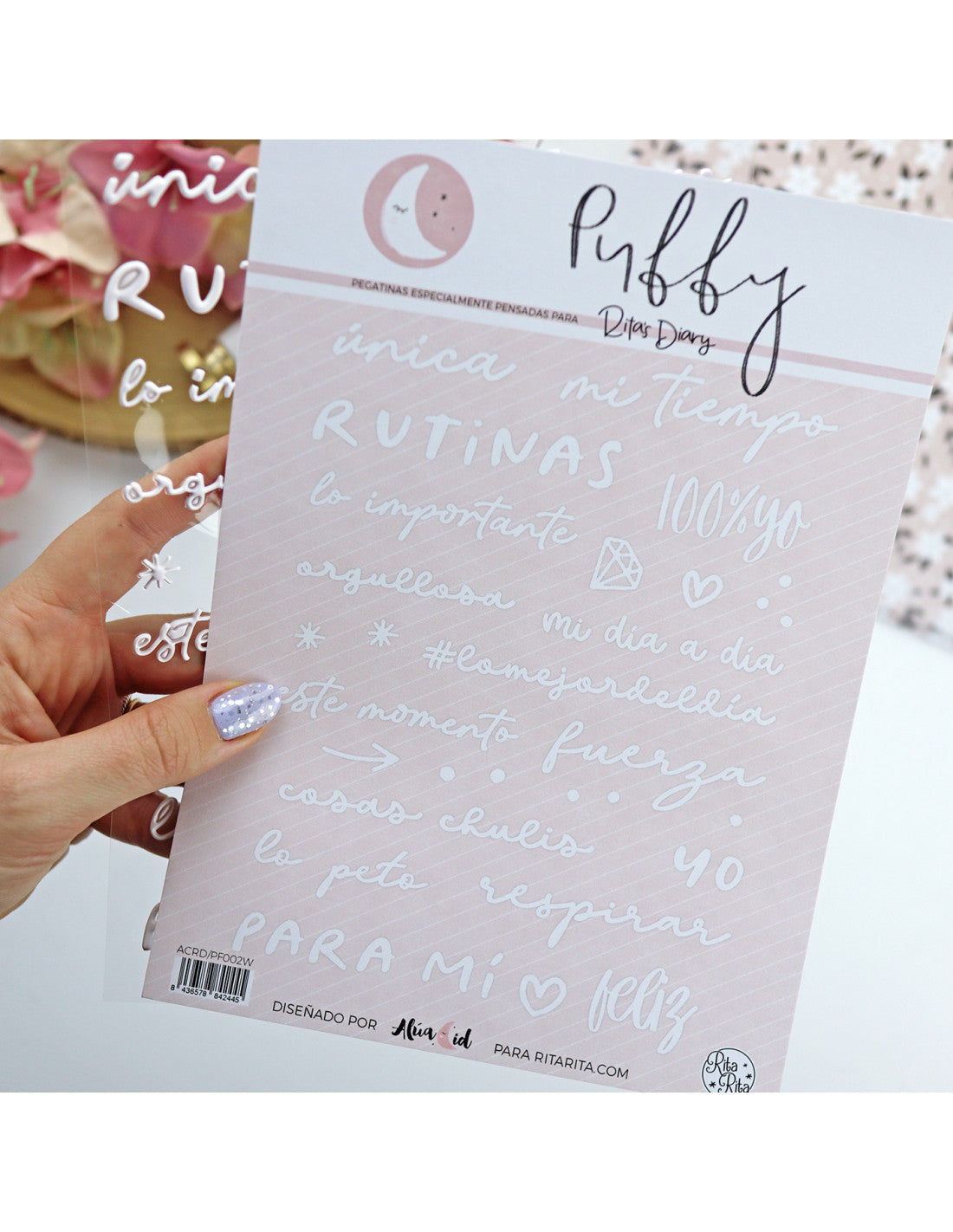 Para Mí. White puffy stickers