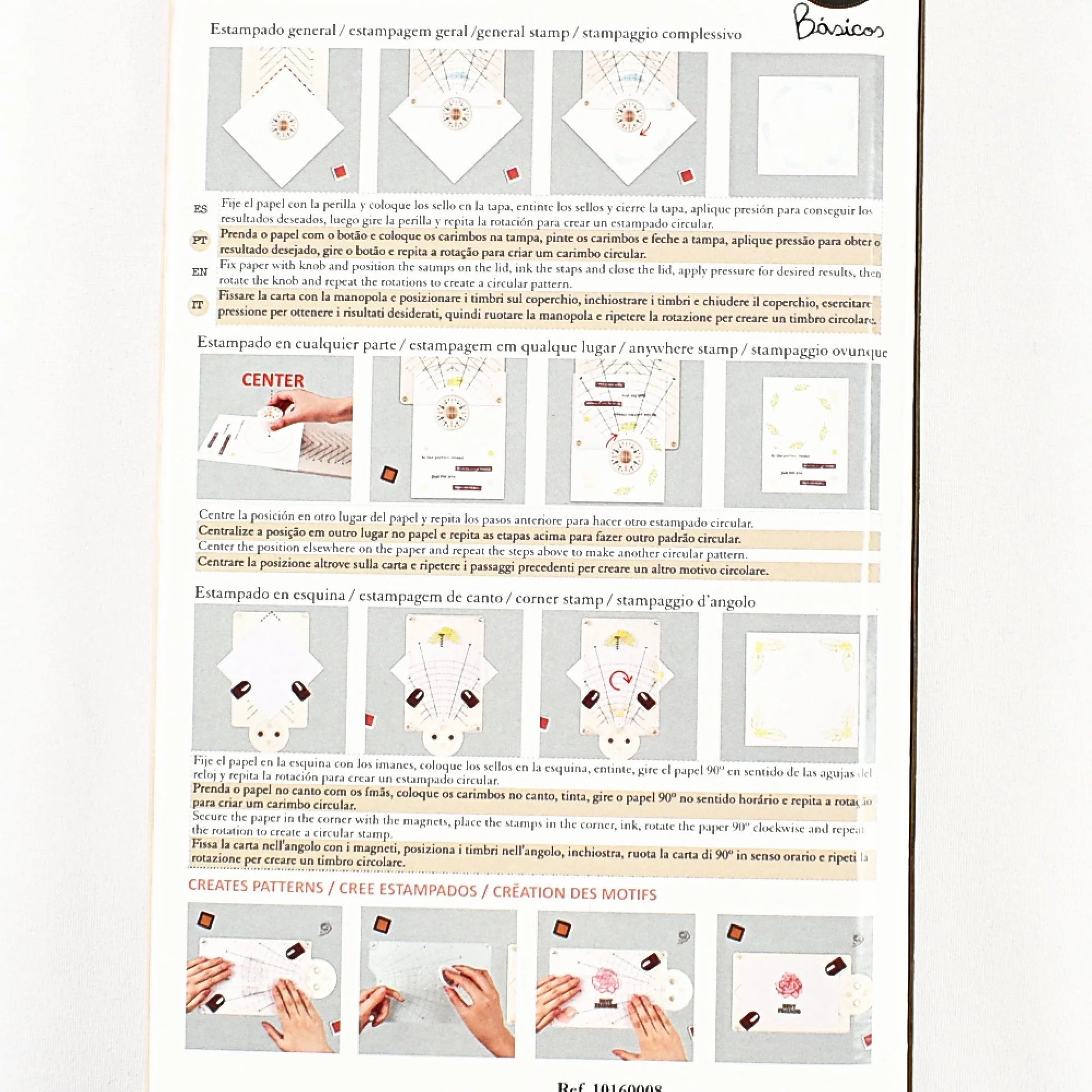 Además de la posibilidad de estampar en cualquier lugar del papel, con esta base podrás hacer diseños circulares de forma sencilla y con un acabado perfecto.